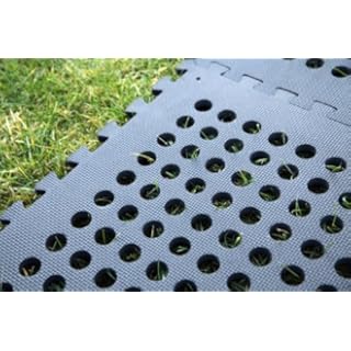 Sixty-Four EVA mats. Each mat 52cm x 52cm x 1.2cm (Approx 186.28sqft or 17.28sqm)These anti slip anti fatigue mats are extremely comfortable yet durable and provide a soft area around climbing frames, swings, trampolines etc.