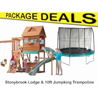 The Stonybrook Lodge Climbing Frame and 12ft Trampoline Package is a great money saving offer. The Stonybrook has all the features you would expect like the curved wavy slide, 2 belt swings and a glider. There are also some little extras you woudln't expect like the sundeck, solid rockwall and cafe style opening with 2 stools attached - perfect for resting. The 12ft Jumpking Air is great for bouncing and has a safety net and ladder included.What Other Items Do Customers Buy After Viewing This Item?